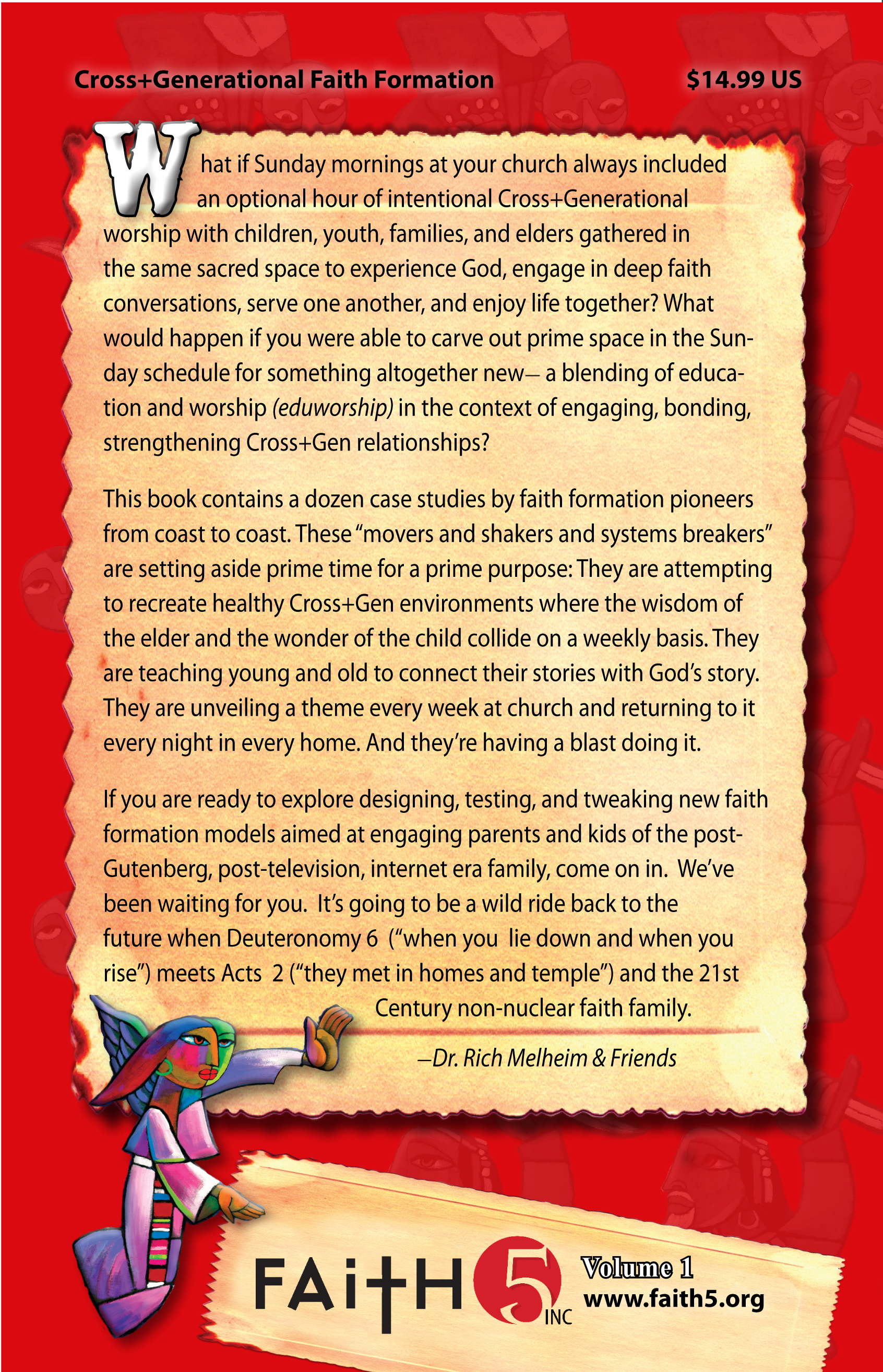 This book contains a dozen case studies by faith formation pioneers from coast to coast. These "movers and shakers and systems breakers" are setting aside prime time for a prime purpose: They are attempting to recreate healthy Cross+Gen environments where the wisdom of the elder and the wonder of the child collide on a weekly basis. They are teaching young and old to connect their stories with God's story. They are unveiling a theme every week at church and returning to it every night in every home. And they're having a blast doing it.